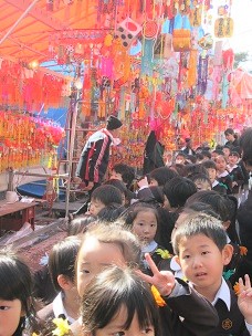 おもちゃいっぱいの屋台を見つけて、立ち止まり・・・・。