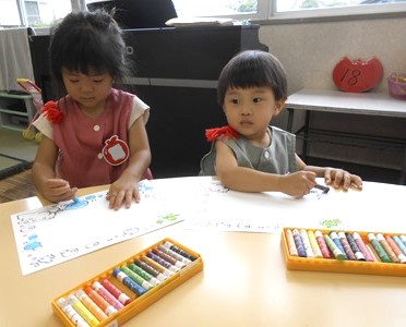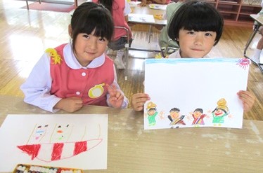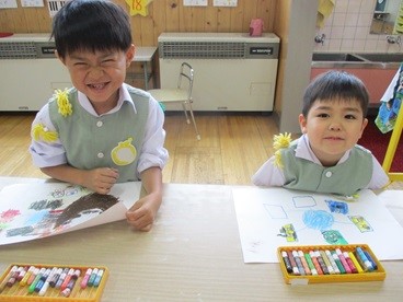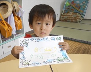 16日(日)に行われました≪お父さんと遊ぼう≫を思い出し、お絵描きをしました。