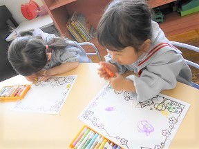 つぼみ組さんがお絵描きをしました。