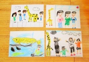動物たちや、大好きなお父さん、お母さんの絵が描かれていました。