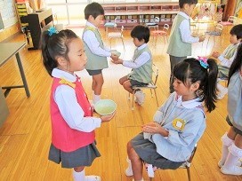おいしいお茶を、月組さんの小さな手が運びます。