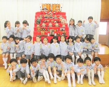 その会で披露する幼稚園のお雛様を年長月組が代表で飾りました♪