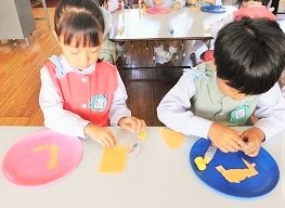 水曜日に みんなで目・鼻・口をちぎり絵で作ります。
