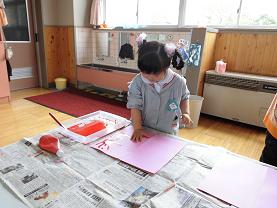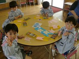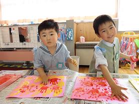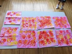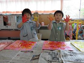絵の具の黄色と赤! この2色を使っての製作です(^v^)!!