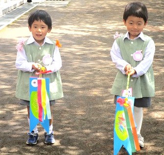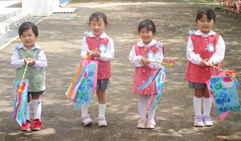 今日は、自分で作ったこいのぼりを持ち記念撮影を行いました。