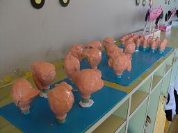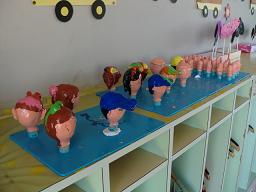 昨日出来上がった 紙粘土の顔に 色付けをしたものです!