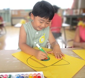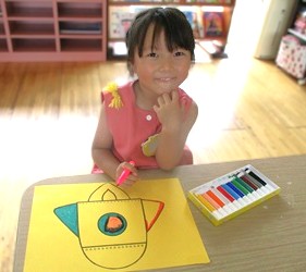 飛び立つロケットのデザインを、真剣に考えて色塗りをしてくれました。