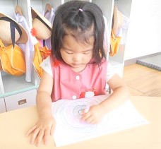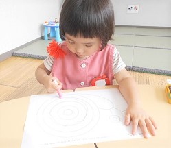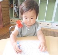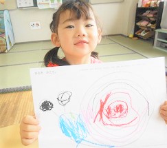 ぐるぐると線を描く練習をしました。