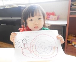 クレヨンをしっかりと持って描きます。