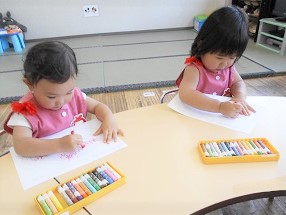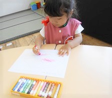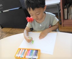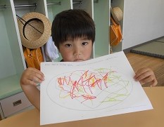 つぼみ組さんがトーストの上にクレヨンでおいしいジャムを描きました。