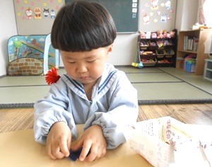今日のこいのぼり作りの様子は、つぼみ組さんです。