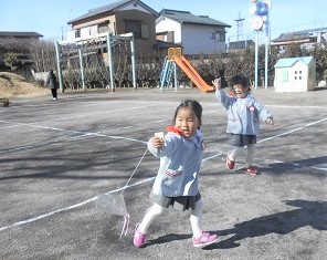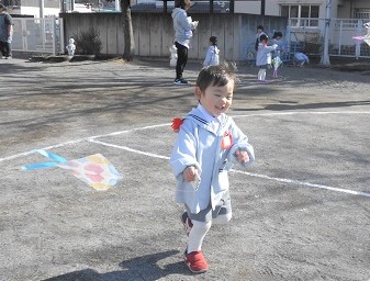 園庭に出てみんなでたこあげをしました(^^)