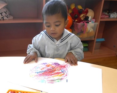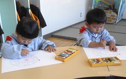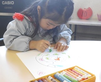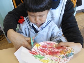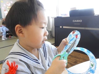 今日は、たこあげを楽しみにしながらたこに色を塗って、はさみで切りましたよ!