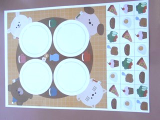 その後は動物さんのお皿においしそうな食べ物を分けてあげるせいさくです。
