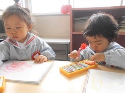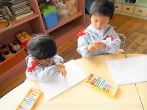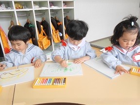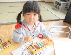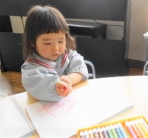 今日のつぼみ組さんはクレヨン遊びです。