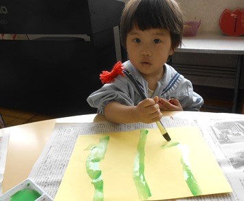 今日はつぼみ組さんが季節のせいさくで「たけのこ」を作りました。