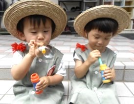 まずは昨日、しゃぼん玉で遊びながら「吹く」練習をしました。