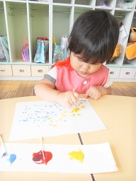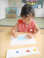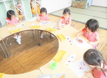今日は2歳児つぼみ組さんの「季節の製作」をご紹介します。
