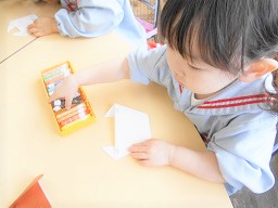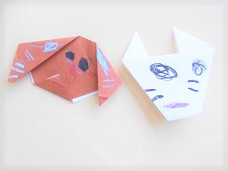 楽しく作った「ねこ&いぬ」の折り紙を今日、持ち帰りました。