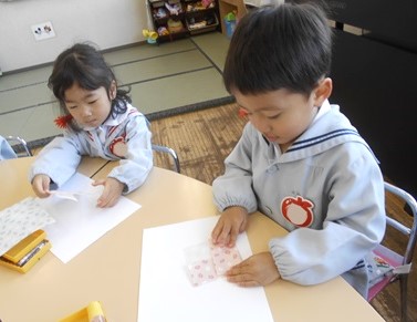 のりの使い方もとても上手になってきたつぼみ組さん。