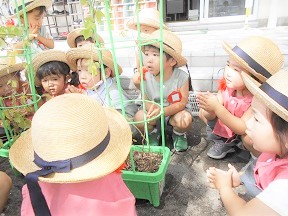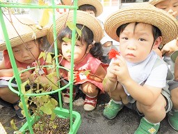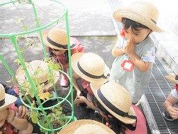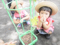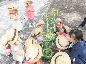 つぼみ組さんみんなで育てた朝顔を観察しました。