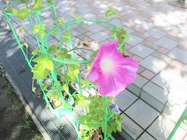 水色や紫、ピンクや白の入った素敵な朝顔がたくさん咲きました。