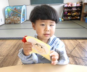 5月11日の母の日に合わせて、幼稚園では5月9日(金)に持ち帰ります。