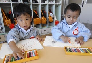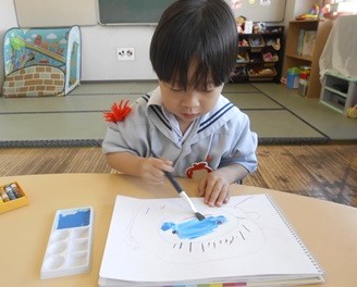 絵の具は好きな色を選んで塗りました。