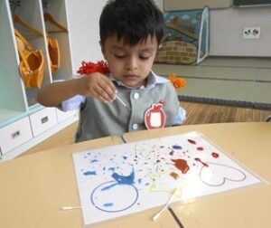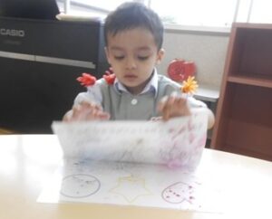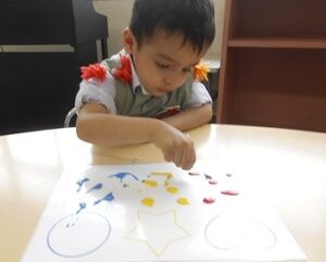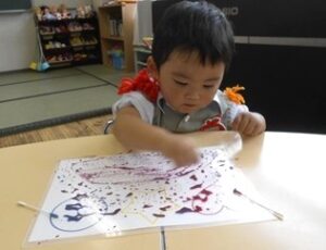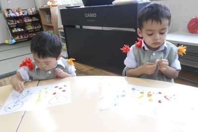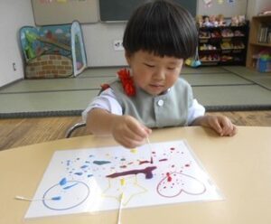 水彩絵の具を落として綿棒で色を合わせて遊びました。