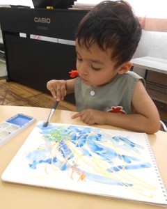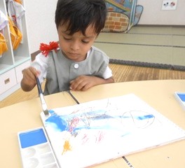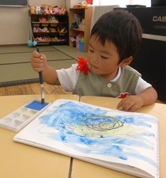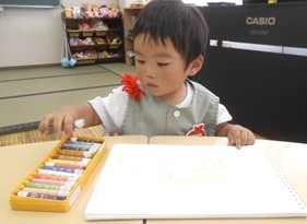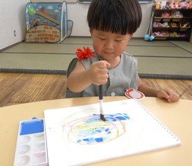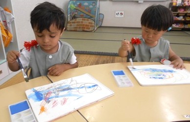 つぼみ組さんが、絵の具あそびをしました。