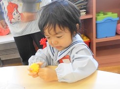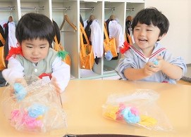 今日のこいのぼり作りの様子は、つぼみ組さんです。