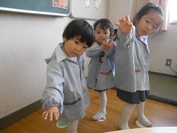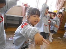 カエルになりきり元気に踊るつぼみ組さん。