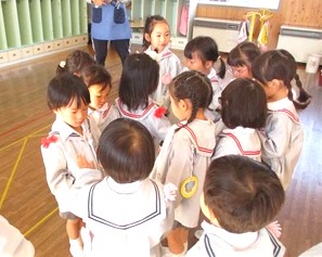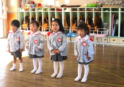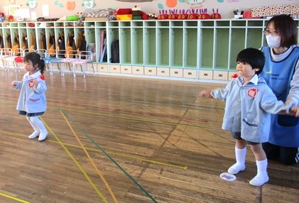 つぼみ組さんと花組さんが、クリスマス会の練習をお互いに見せ合うミニ発表会を行いました。