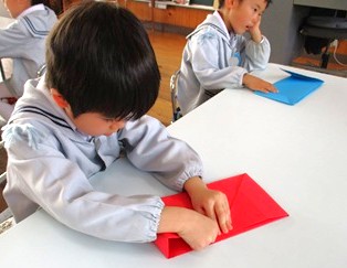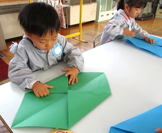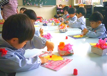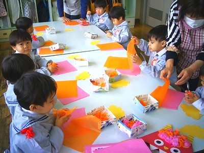 2月3日(火)の豆まきに向けて、つぼみ組さんと雪組さんで鬼のお面を作り始めました。