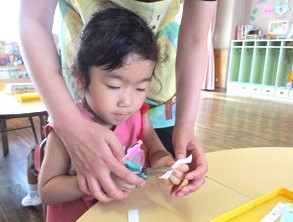 切り方を先生に教えてもらいながら、ゆっくり丁寧に自分の力で切っていきます。