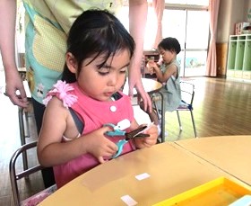 今日のはな組さんは、はさみの練習です。