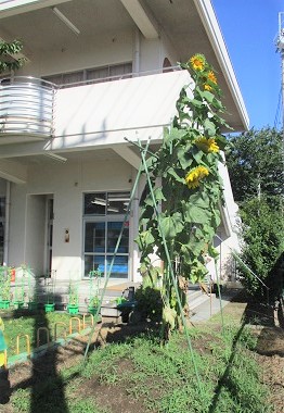 種まきをしたひまわりが、夏休み中にすくすく育ちましたので、