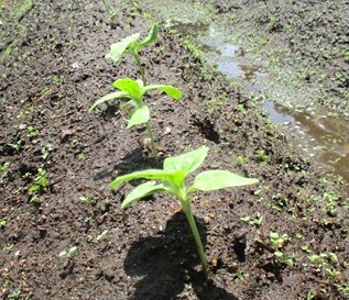 先日、畑にまいたひまわりの種・・・。
