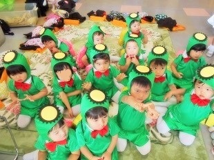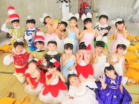 控室での衣装姿です。 各クラスの先生にお願いしてお写真を撮っていただきました。