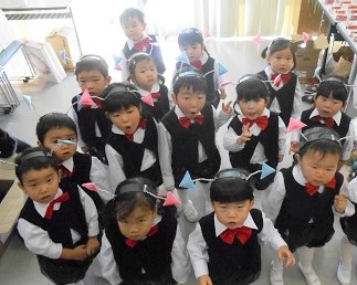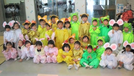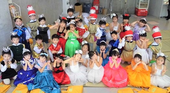 控室での衣装姿です。 各クラスの先生にお願いしてお写真を撮っていただきました。