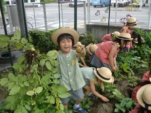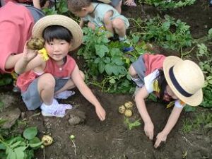 今日は、つきぐみさんみんなで ジャガイモ掘りをしました。