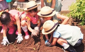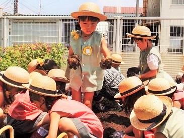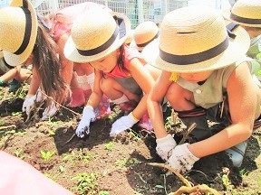 今日は、つきぐみさんみんなで ジャガイモ掘りをしました。