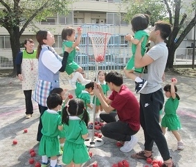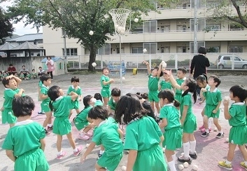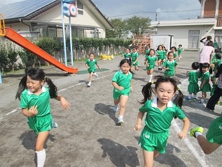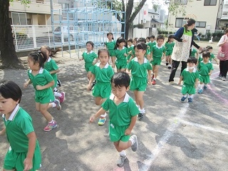 その後に、スポーツクラブでマラソンと玉入れを行いました。