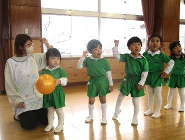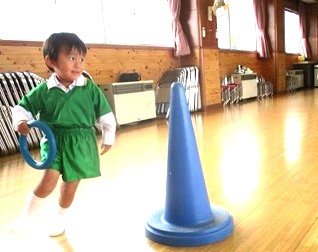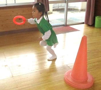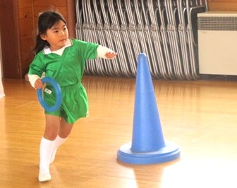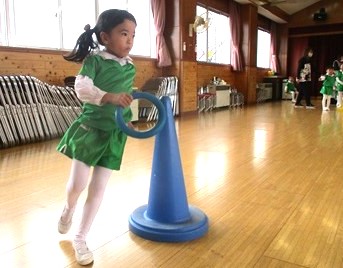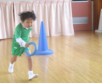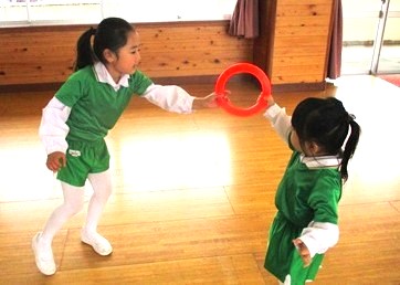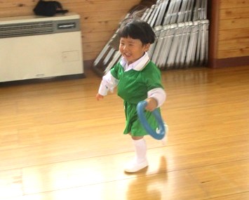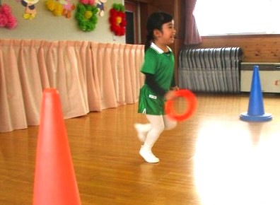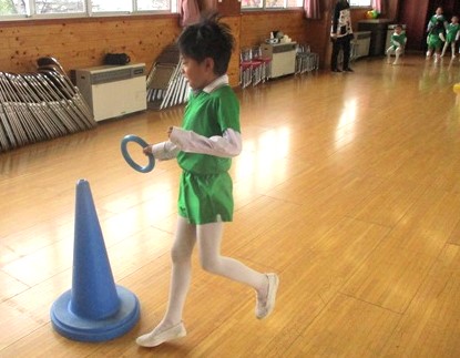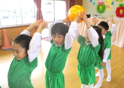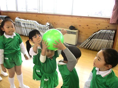 小さなクラスも大きなクラスもみんなでボールやバトンを渡しあい、