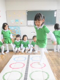 遊戯室での体操後は各クラスに分かれてスポーツクラブを楽しみました。