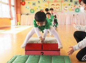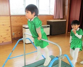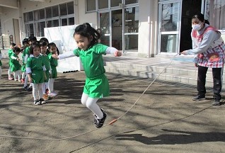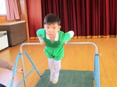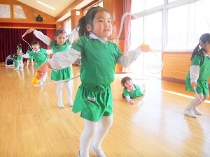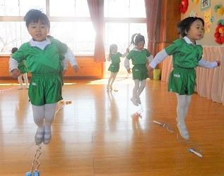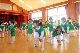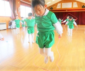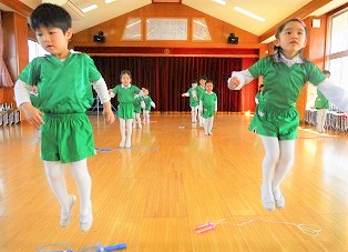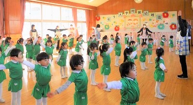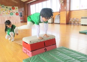 他クラスは遊戯室で体操後、小さなお庭や遊戯室に分かれてスポーツクラブを楽しみました。