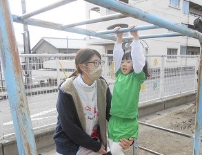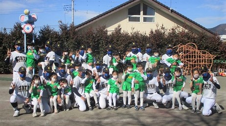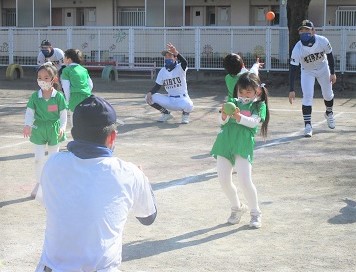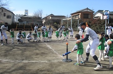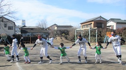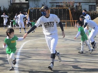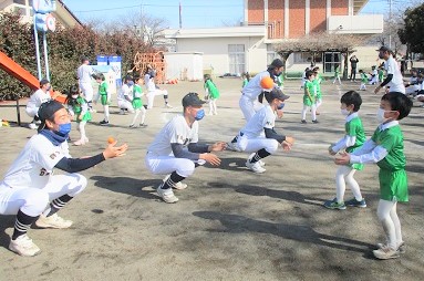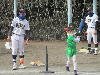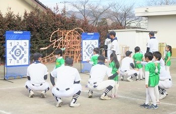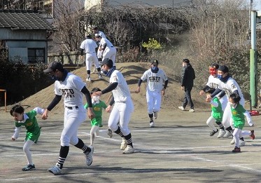 桐生第一高等学校の野球部のお兄さんたちが子供たちと一緒に、