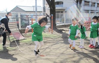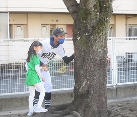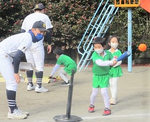 月組さんは「ティーボール教室」のため園庭を使わせていただき、