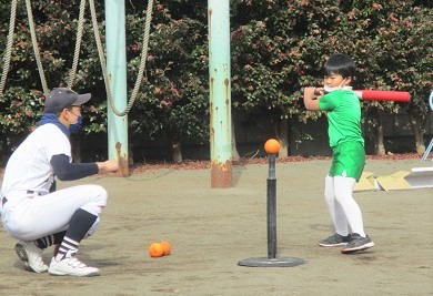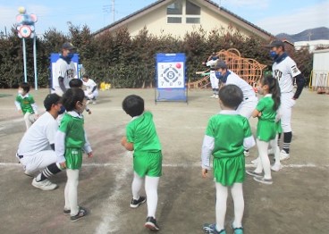 柔らかいボールやバットを使ってキャッチボールやティーボール、そしてゲームをして遊んでくれました。