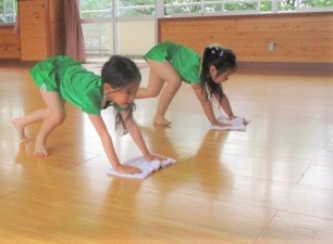 使用する場所への感謝から、雑巾で遊戯室掃除もします。